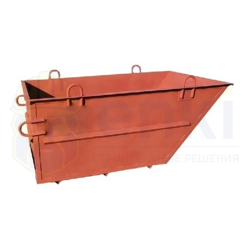 Модель выдерживает до 2,4 тонн раствора, при этом имеет объем 1,0 м³ и весит 190 кг. Прочная металлическая конструкция с строповочными петлями обеспечивает надежную фиксацию при подъеме краном. Окрашена в заметный оранжевый цвет для улучшенной видимости на объекте.