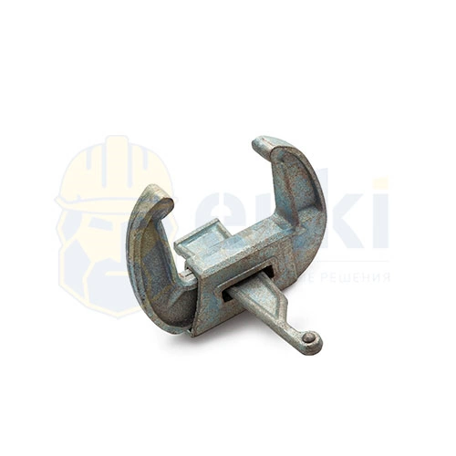 Съёмный крепёжный элемент для алюминиевой, стальной опалубки толщиной до 20 см, изготовленный из неоцинкованной конструкционной стали с содержанием углерода 0,35 % (без покрытия). Обеспечивает жёсткую, высокопрочную стяжку и идеальное выравнивание соединяемых металлических щитов относительно друг друга, что гарантирует безупречно ровную бетонируемую поверхность. Для соединения элементов опалубки в одной плоскости необходимо установить губки и забить клин в рабочее отверстие молотком. Демонтаж производится путём выбивания клина. Надёжный, простой в эксплуатации, неразборный стальной клиновой замок («краб») для многократного применения.
