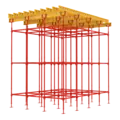 Стойки оснащены двумя опорными площадками – верхней и нижней. Необходимая высота задаётся с помощью регулировочной гайки, а фиксация осуществляется шпилькой. Выравнивание стойки по вертикали и придание дополнительной устойчивости достигается посредством треног. Крестовые головки устанавливаются поверх стоек, они необходимы для укладки двутавровых балок.