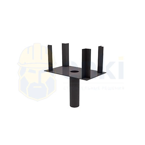 Используется в комбинации с телескопической стойкой. Позволяет жёстко зафиксировать опору стойки и брус, что исключает смещение при возникновении нагрузки в процессе бетонирования. Представляет собой прямоугольный лист стали толщиной 5 мм с приваренными уголками по углам (4 шт.). По центру с другой стороны приварена труба, которая помещается в направляющую телескопической стойки и удерживается в ней весом опалубки и бетона. Унивилка повышает безопасность работ, предупреждает проседание щитов и перекрытий.