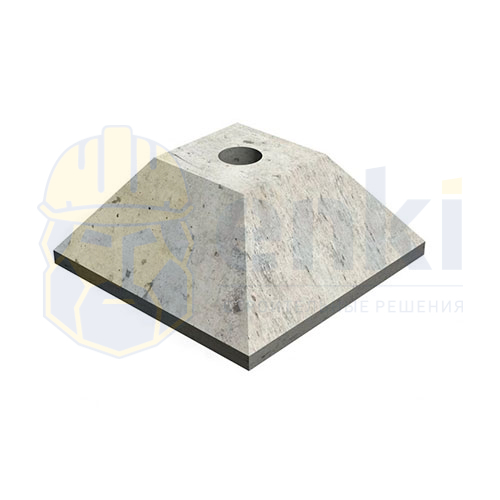 Фундамент дорожного знака Ф 2-6 выполнен в виде усечённой четырёхгранной пирамиды. Квадратное основание обеспечивает устойчивость конструкции. По центру расположено отверстие, предназначенное для монтажа стоек.